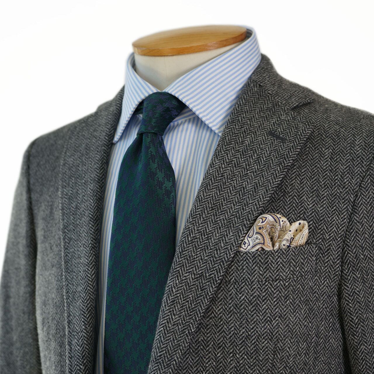 贅沢な糸使いによるガンクラブCKネクタイは、豊かな光沢と立体感を追求しました。