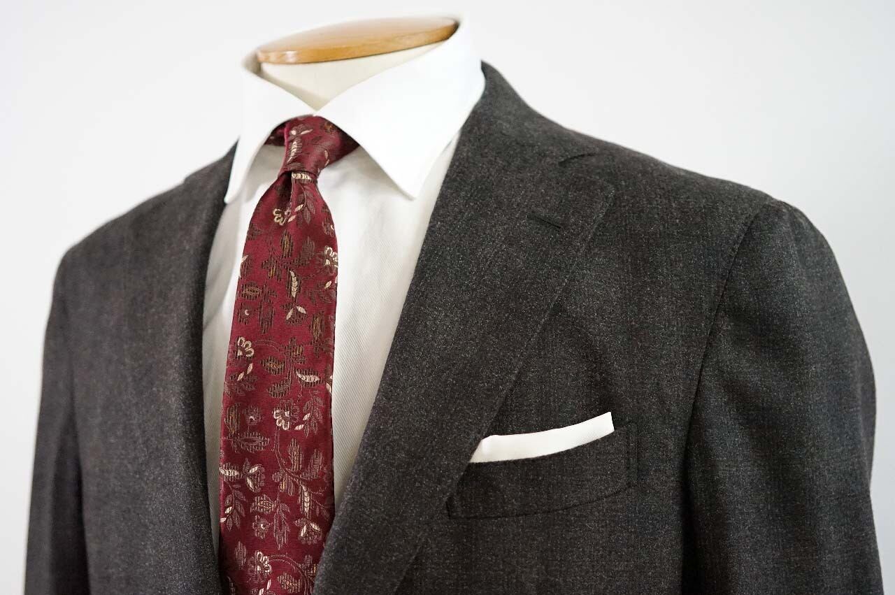贅沢な糸使いによるサラサパターンネクタイは、交織感ある色合いに豊かな光沢と滑らさを追求しました。