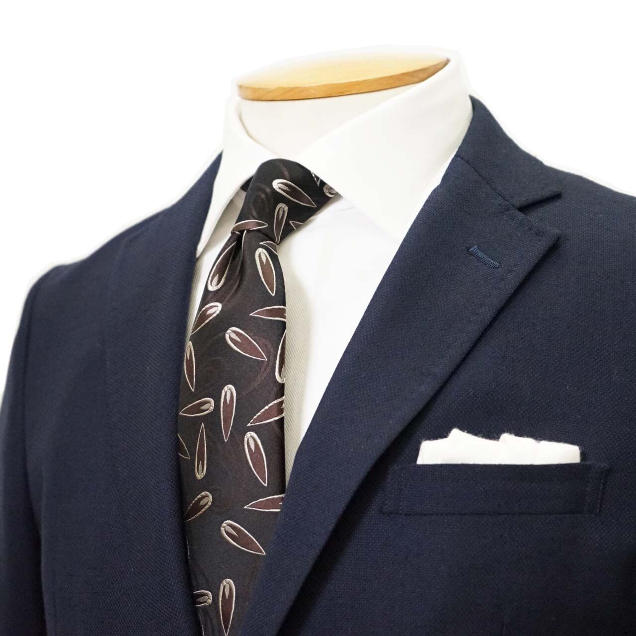 贅沢な糸使いによるペイズリーネクタイは、サテンの交織感ある色合いに豊かな光沢と滑らさを追求しました。